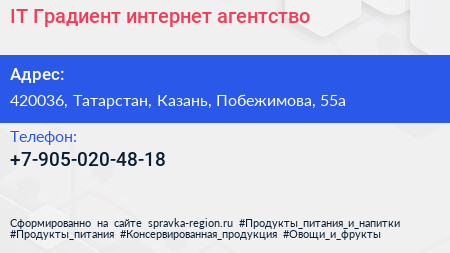 IT-Градиент, интернет-агентство по адресу 420036, Татарстан, Казань, Побежимова, 55а в дальнейшем Организация, размещена в следующих категориях: