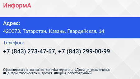 ИнформА по адресу 420073, Татарстан, Казань, Гвардейская, 14 в дальнейшем Организация, размещена в следующих категориях: