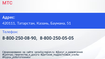 МТС по адресу 420111, Татарстан, Казань, Баумана, 51 в дальнейшем Организация, размещена в следующих категориях: