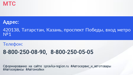 МТС по адресу 420138, Татарстан, Казань, проспект Победы, вход метро №1 в дальнейшем Организация, размещена в следующих категориях: