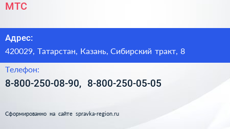 МТС по адресу 420029, Татарстан, Казань, Сибирский тракт, 8 в дальнейшем Организация, размещена в следующих категориях:
