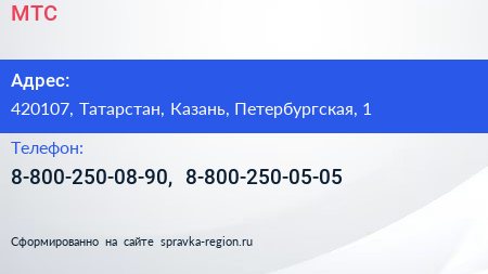 МТС по адресу 420107, Татарстан, Казань, Петербургская, 1 в дальнейшем Организация, размещена в следующих категориях: