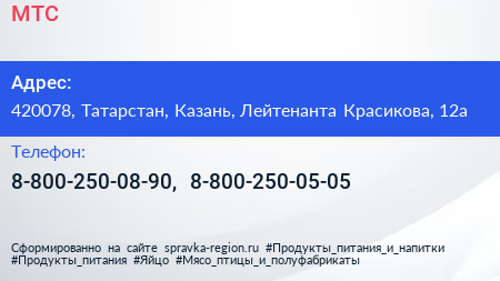 МТС по адресу 420078, Татарстан, Казань, Лейтенанта Красикова, 12а в дальнейшем Организация, размещена в следующих категориях: