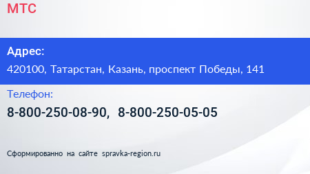 МТС по адресу 420100, Татарстан, Казань, проспект Победы, 141 в дальнейшем Организация, размещена в следующих категориях: