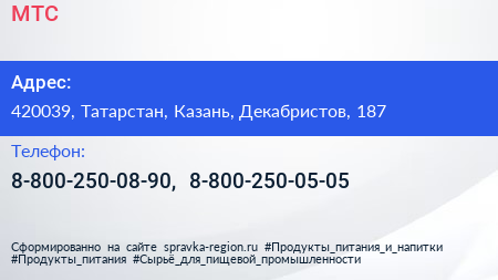 МТС по адресу 420039, Татарстан, Казань, Декабристов, 187 в дальнейшем Организация, размещена в следующих категориях: