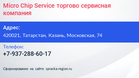 Micro-Chip Service, торгово-сервисная компания по адресу 420021, Татарстан, Казань, Московская, 74 в дальнейшем Организация, размещена в следующих категориях: