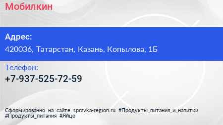 Мобилкин по адресу 420036, Татарстан, Казань, Копылова, 1Б в дальнейшем Организация, размещена в следующих категориях: