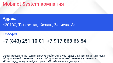Mobinet System, компания по адресу 420100, Татарстан, Казань, Закиева, 3а в дальнейшем Организация, размещена в следующих категориях:
