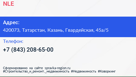 NLE по адресу 420073, Татарстан, Казань, Гвардейская, 45а/5 в дальнейшем Организация, размещена в следующих категориях: