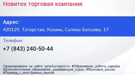Новитек, торговая компания по адресу 420129, Татарстан, Казань, Салиха Батыева, 17 в дальнейшем Организация, размещена в следующих категориях: