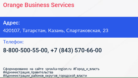 Orange Business Services по адресу 420107, Татарстан, Казань, Спартаковская, 23 в дальнейшем Организация, размещена в следующих категориях:
