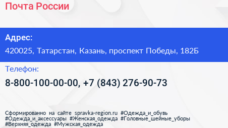 Почта России по адресу 420025, Татарстан, Казань, проспект Победы, 182Б в дальнейшем Организация, размещена в следующих категориях: