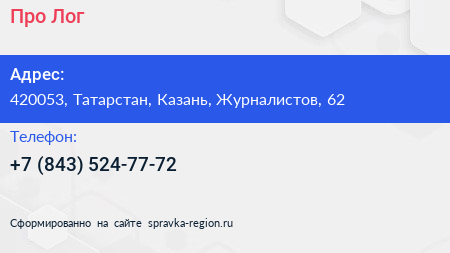 Про-Лог по адресу 420053, Татарстан, Казань, Журналистов, 62 в дальнейшем Организация, размещена в следующих категориях: