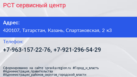 РСТ, сервисный центр по адресу 420107, Татарстан, Казань, Спартаковская, 2 к3 в дальнейшем Организация, размещена в следующих категориях: