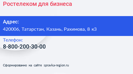 Ростелеком для бизнеса по адресу 420006, Татарстан, Казань, Рахимова, 8 к3 в дальнейшем Организация, размещена в следующих категориях: