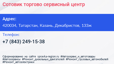 Сотовик, торгово-сервисный центр по адресу 420034, Татарстан, Казань, Декабристов, 133ж в дальнейшем Организация, размещена в следующих категориях: