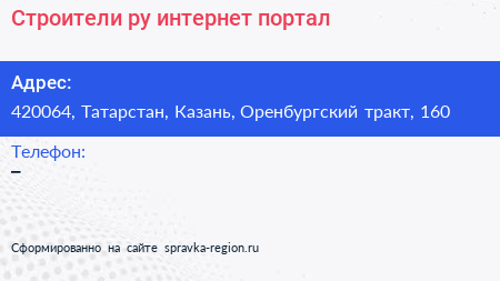Строители.ру, интернет-портал по адресу 420064, Татарстан, Казань, Оренбургский тракт, 160 в дальнейшем Организация, размещена в следующих категориях: