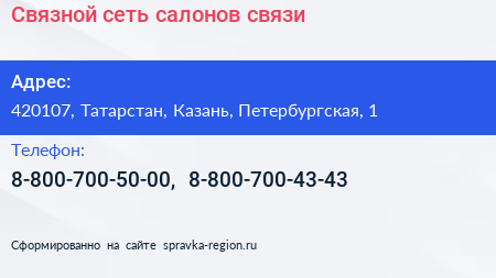 Связной, сеть салонов связи по адресу 420107, Татарстан, Казань, Петербургская, 1 в дальнейшем Организация, размещена в следующих категориях: