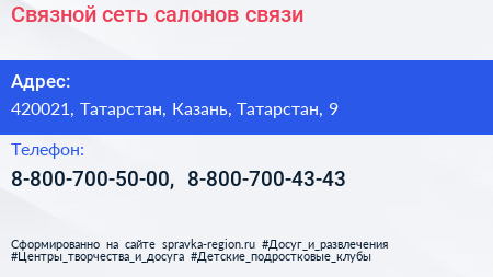 Связной, сеть салонов связи по адресу 420021, Татарстан, Казань, Татарстан, 9 в дальнейшем Организация, размещена в следующих категориях: