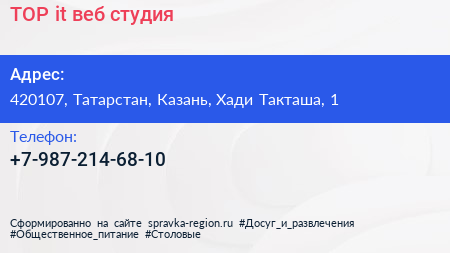 TOP-it, веб-студия по адресу 420107, Татарстан, Казань, Хади Такташа, 1 в дальнейшем Организация, размещена в следующих категориях: