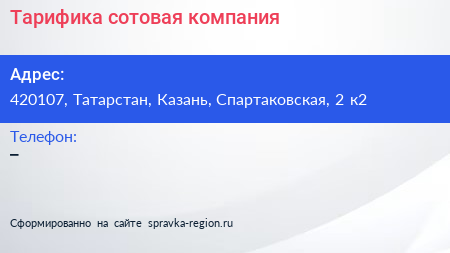 Тарифика, сотовая компания по адресу 420107, Татарстан, Казань, Спартаковская, 2 к2 в дальнейшем Организация, размещена в следующих категориях: