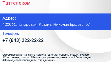 Таттелеком по адресу 420061, Татарстан, Казань, Николая Ершова, 57 в дальнейшем Организация, размещена в следующих категориях: