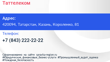 Таттелеком по адресу 420094, Татарстан, Казань, Короленко, 81 в дальнейшем Организация, размещена в следующих категориях: