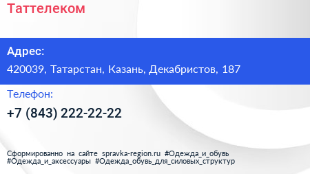 Таттелеком по адресу 420039, Татарстан, Казань, Декабристов, 187 в дальнейшем Организация, размещена в следующих категориях:
