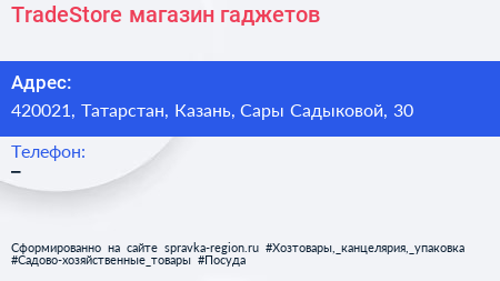 TradeStore, магазин гаджетов по адресу 420021, Татарстан, Казань, Сары Садыковой, 30 в дальнейшем Организация, размещена в следующих категориях: