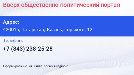 Вверх, общественно-политический портал по адресу 420015, Татарстан, Казань, Горького, 12 в дальнейшем Организация, размещена в следующих категориях:
