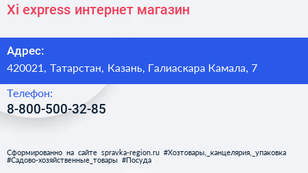 Xi express, интернет-магазин по адресу 420021, Татарстан, Казань, Галиаскара Камала, 7 в дальнейшем Организация, размещена в следующих категориях: