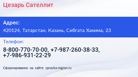 Цезарь Сателлит по адресу 420124, Татарстан, Казань, Сибгата Хакима, 23 в дальнейшем Организация, размещена в следующих категориях: