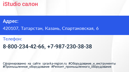 iStudio, салон по адресу 420107, Татарстан, Казань, Спартаковская, 6 в дальнейшем Организация, размещена в следующих категориях: