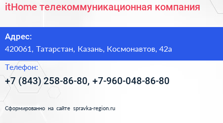 itHome, телекоммуникационная компания по адресу 420061, Татарстан, Казань, Космонавтов, 42а в дальнейшем Организация, размещена в следующих категориях: