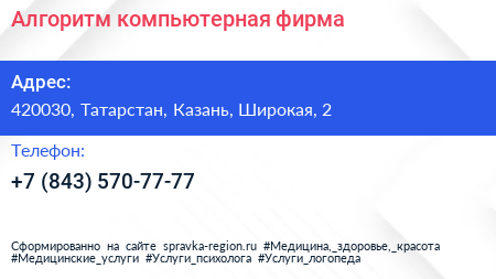 Алгоритм, компьютерная фирма по адресу 420030, Татарстан, Казань, Широкая, 2 в дальнейшем Организация, размещена в следующих категориях: