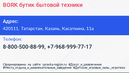 BORK, бутик бытовой техники по адресу 420111, Татарстан, Казань, Касаткина, 11а в дальнейшем Организация, размещена в следующих категориях: