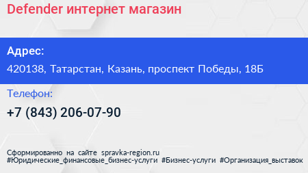 Defender, интернет-магазин по адресу 420138, Татарстан, Казань, проспект Победы, 18Б в дальнейшем Организация, размещена в следующих категориях: