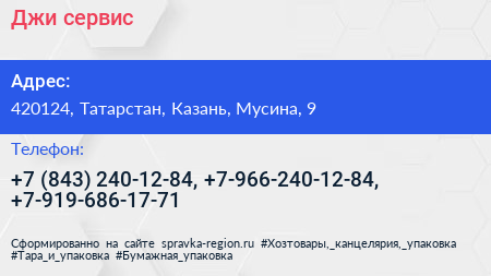 Джи сервис по адресу 420124, Татарстан, Казань, Мусина, 9 в дальнейшем Организация, размещена в следующих категориях: