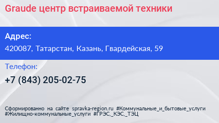 Graude, центр встраиваемой техники по адресу 420087, Татарстан, Казань, Гвардейская, 59 в дальнейшем Организация, размещена в следующих категориях: