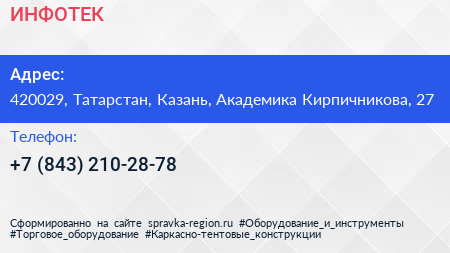 ИНФОТЕК по адресу 420029, Татарстан, Казань, Академика Кирпичникова, 27 в дальнейшем Организация, размещена в следующих категориях: