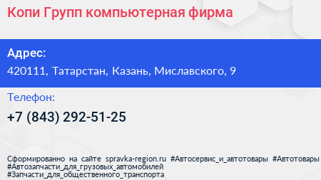 Копи-Групп, компьютерная фирма по адресу 420111, Татарстан, Казань, Миславского, 9 в дальнейшем Организация, размещена в следующих категориях: