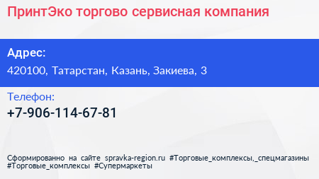 ПринтЭко, торгово-сервисная компания по адресу 420100, Татарстан, Казань, Закиева, 3 в дальнейшем Организация, размещена в следующих категориях: