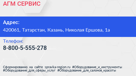 АГМ-СЕРВИС по адресу 420061, Татарстан, Казань, Николая Ершова, 1а в дальнейшем Организация, размещена в следующих категориях: