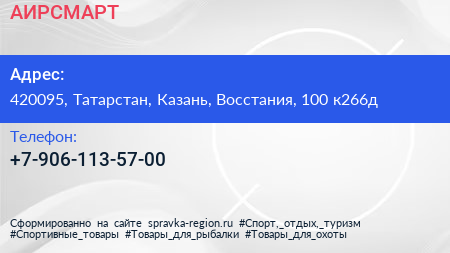 АИРСМАРТ по адресу 420095, Татарстан, Казань, Восстания, 100 к266д в дальнейшем Организация, размещена в следующих категориях: