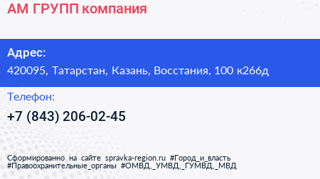 АМ ГРУПП, компания по адресу 420095, Татарстан, Казань, Восстания, 100 к266д в дальнейшем Организация, размещена в следующих категориях: