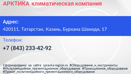 АРКТИКА, климатическая компания по адресу 420111, Татарстан, Казань, Бурхана Шахиди, 17 в дальнейшем Организация, размещена в следующих категориях:
