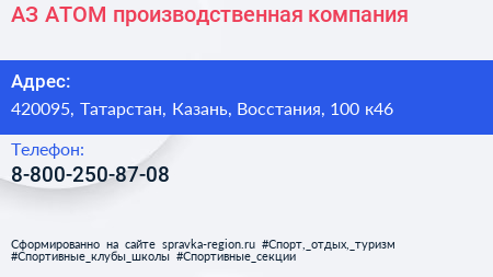 АЗ АТОМ, производственная компания по адресу 420095, Татарстан, Казань, Восстания, 100 к46 в дальнейшем Организация, размещена в следующих категориях: