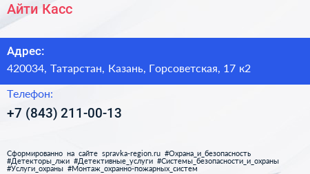 Айти Касс по адресу 420034, Татарстан, Казань, Горсоветская, 17 к2 в дальнейшем Организация, размещена в следующих категориях: