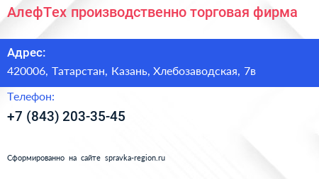 АлефТех, производственно-торговая фирма по адресу 420006, Татарстан, Казань, Хлебозаводская, 7в в дальнейшем Организация, размещена в следующих категориях: