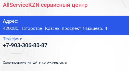 AllServiceKZN, сервисный центр по адресу 420080, Татарстан, Казань, проспект Ямашева, 4 в дальнейшем Организация, размещена в следующих категориях: